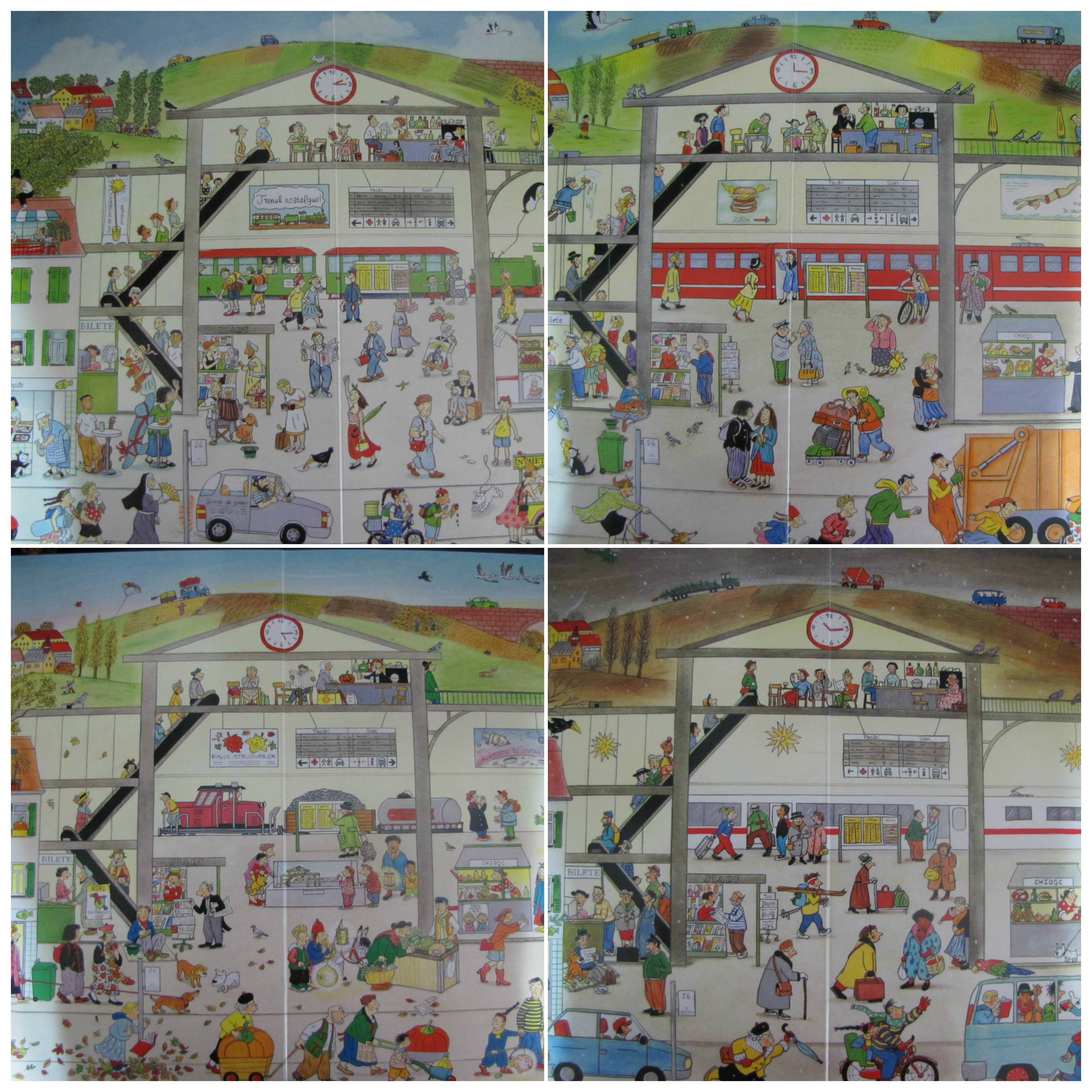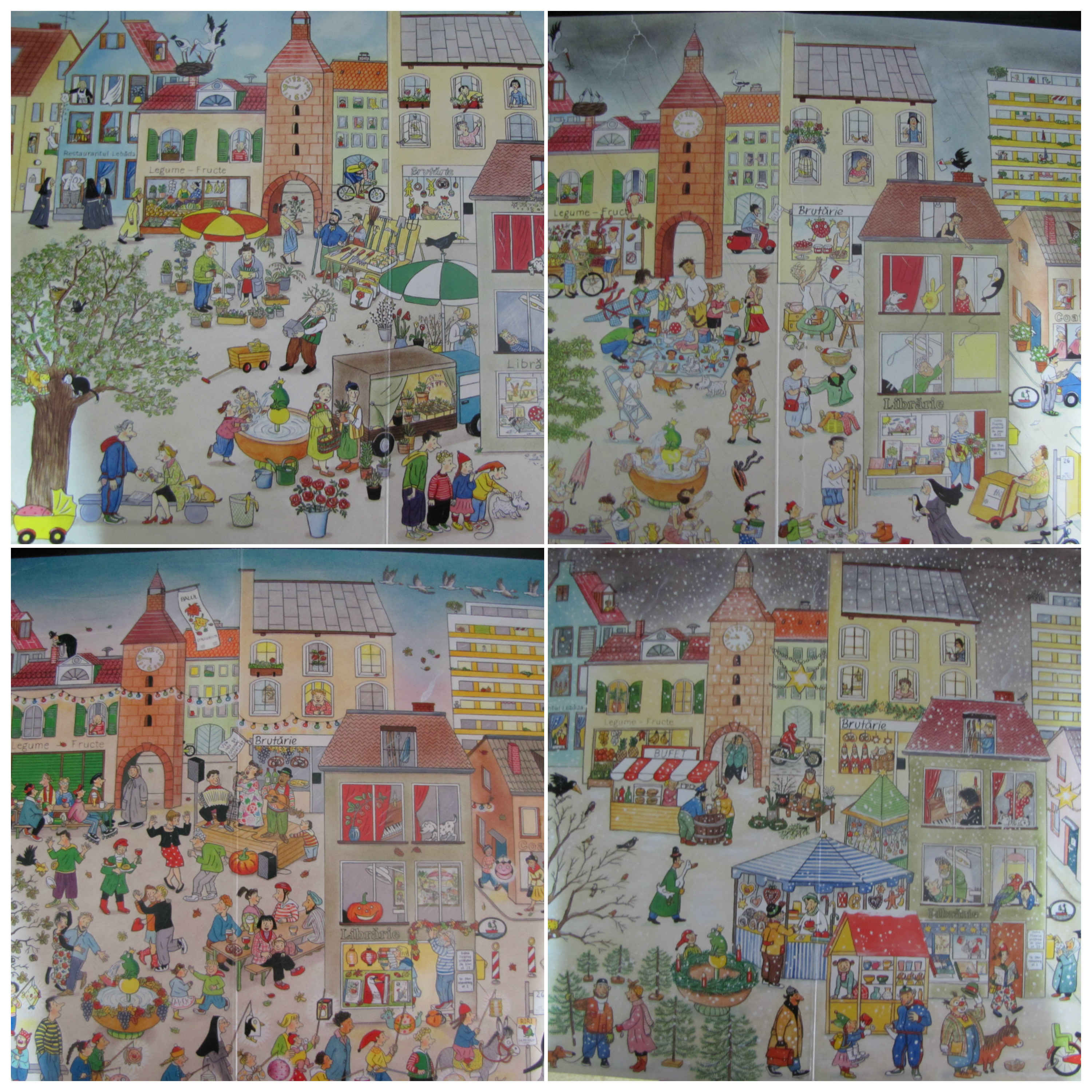 Fiecare dintre cele 4 cărți prezintă aceleași locuri și aceleasi personaje, dar aspectul și activitățile lor variază în funcție de anotimp. Există niște „indicii” pe spatele fiecăreia dintre cărți despre ce li se întamplă personajelor, dar nimic nu e bătut în cuie. Cu puțină imaginație, povestea poate fi de fiecare dată alta și se poate improviza la nesfârșit.