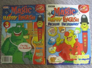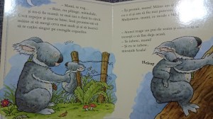Avem si carticele cu povestile clasice – Scufita Rosie, Cenusareasa, Capra cu trei iezi. Ii plac si ele, dar incerc sa ma departez eu cat mai mult de stilul lor. Stiu ca e un curent acum impotriva povestilor cu care am copilarit noi, fiind considerate prea violente. Nu il reneg, dar nici nu as avea pareri atat de extremiste. Mie nu mi-au imprimat porniri violente acele povesti, dovada ca nici macar nu-mi aminteam laturile lor brutale. Dar pe vremea cand am copilarit eu…nu prea erau alte alternative. Acum sunt atat de multe optiuni! De ce sa aleg sa citesc o carte in care capra ii da foc lupului, cand pot sa citesc despre cum copiii opresc apa la chiuveta cand se spala pe dinti, pentru a proteja mediul inconjurator? 🙂