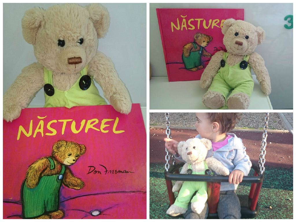 Am cumparat de curand o carte tare frumoasa, la recomandarile si cuvintele de admiratie gasite pe alte bloguri. Nasturel, de Don Freeman. Oliviei i-a placut din start, si pe langa faptul ca am citit impreuna povestea de nenumarate ori, trebuie sa reiau sirul evenimentelor si seara la culcare, pe intuneric 🙂
