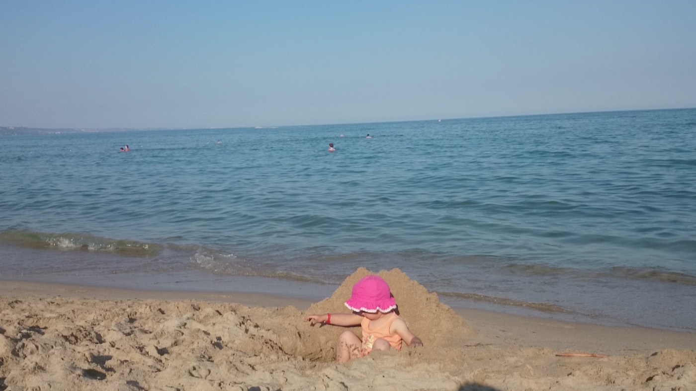– Statiunea e mica, linistita, curata, plaja seamana cu cea din Mamaia, ca nisip si adâncime a apei, dar mi-a amintit putin si de peisajul amalfitan, datorita coastei impadurite si plina de casute ce se zaresc in zare. Ce sa mai, privelistea e frumoasa! Marea… e marea neagra, nu aveam false asteptari de la ea, nu credeam ca la bulgari ar fi mai plina de pestisori sau mai limpede 🙂