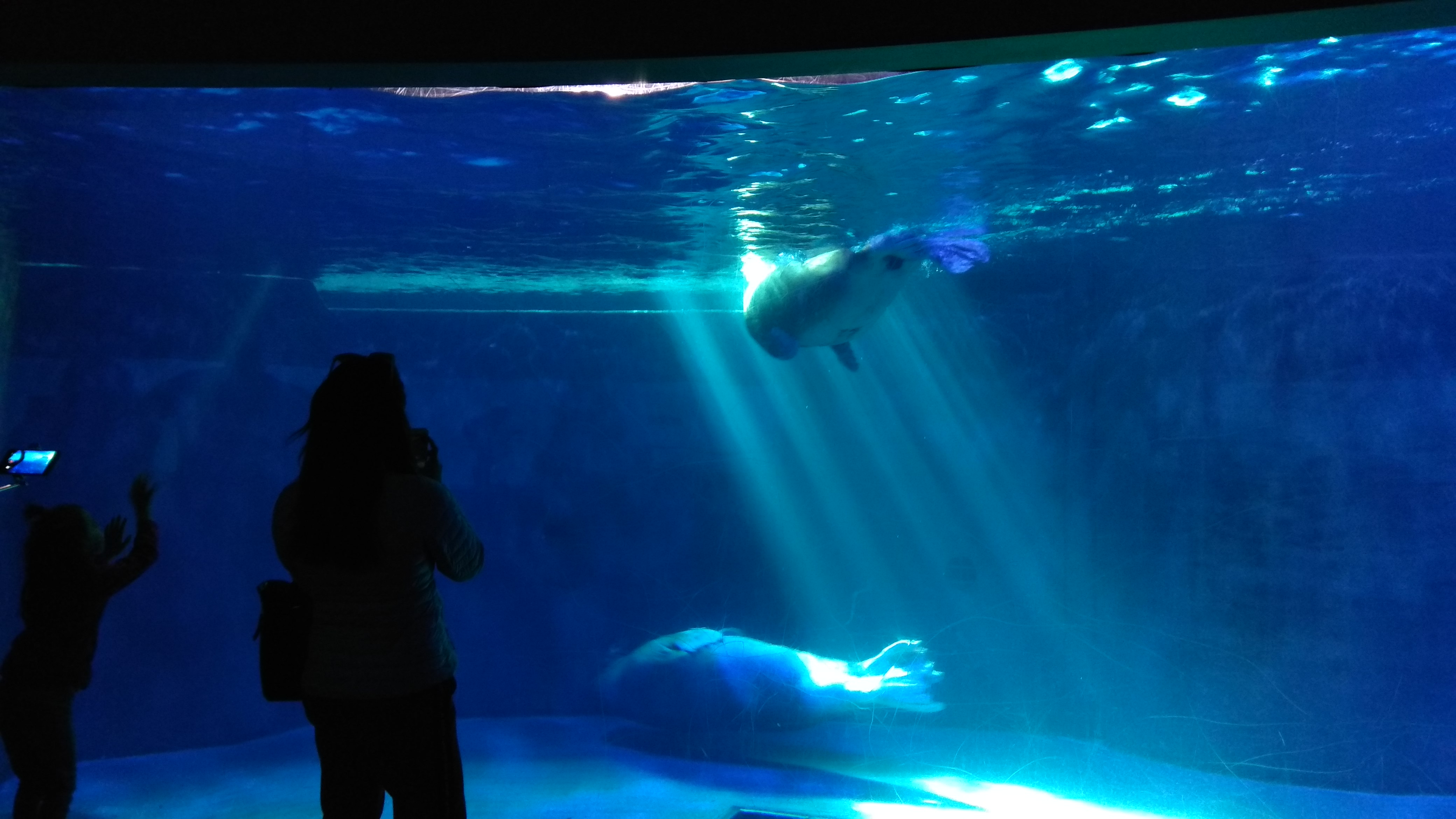Am continuat cu acvariile arctice, care adapostesc leii de mare și celebrele balene beluga. Da! Balene! Nu sunt balenele gigant pe care le știm din filme, ci niște balene albe care trăiesc în mediul lor natural în apropiere de Polul Nord și care ating cam 5 metri lungime. Dar sunt super frumoase, albe și delicate. Oceanograficul adăpostește două astfel de exemplare, mamă și pui. Pentru că știu că sunt mulți cei care cred că astfel de animale nu ar trebui să trăiască în captivitate, o să menționez și ce am aflat la fața locului. Balenele nu sunt acolo doar pentru distracția publicului. Ele sunt acolo și pentru a le fi cercetate comportamentele, obiceiurile, starea de sănătate, factorii de risc. Observațiile făcute asupra lor au ajutat deja la salvarea altor balene beluga și au drept scop protejarea speciei, pe termen lung.