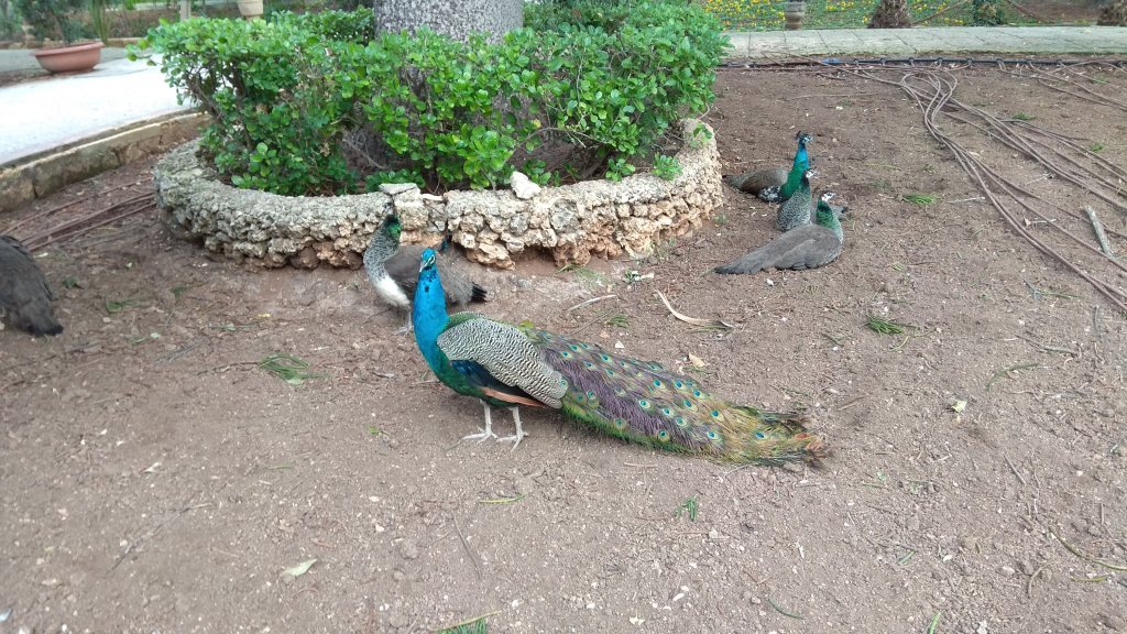 Te poți plimba o oră lejer prin parc, admirând portocalii și încercând să pui mâna pe păuni.