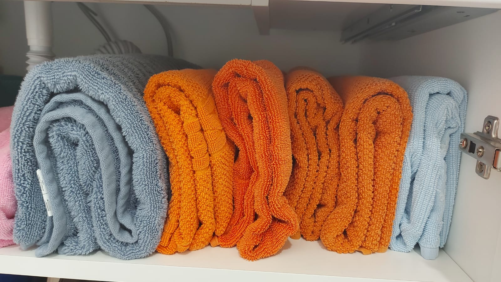 Depozitarea hainelor este un capitol la care Marie Kondo vine din nou cu o abordare inedită. Ea propune înlocuirea stilului clasic de împăturile, în care tricourile stau unul deasupra celuilalt, cu o variantă… pe verticală. O să las pozele și materialul video de mai jos să vorbească de la sine.