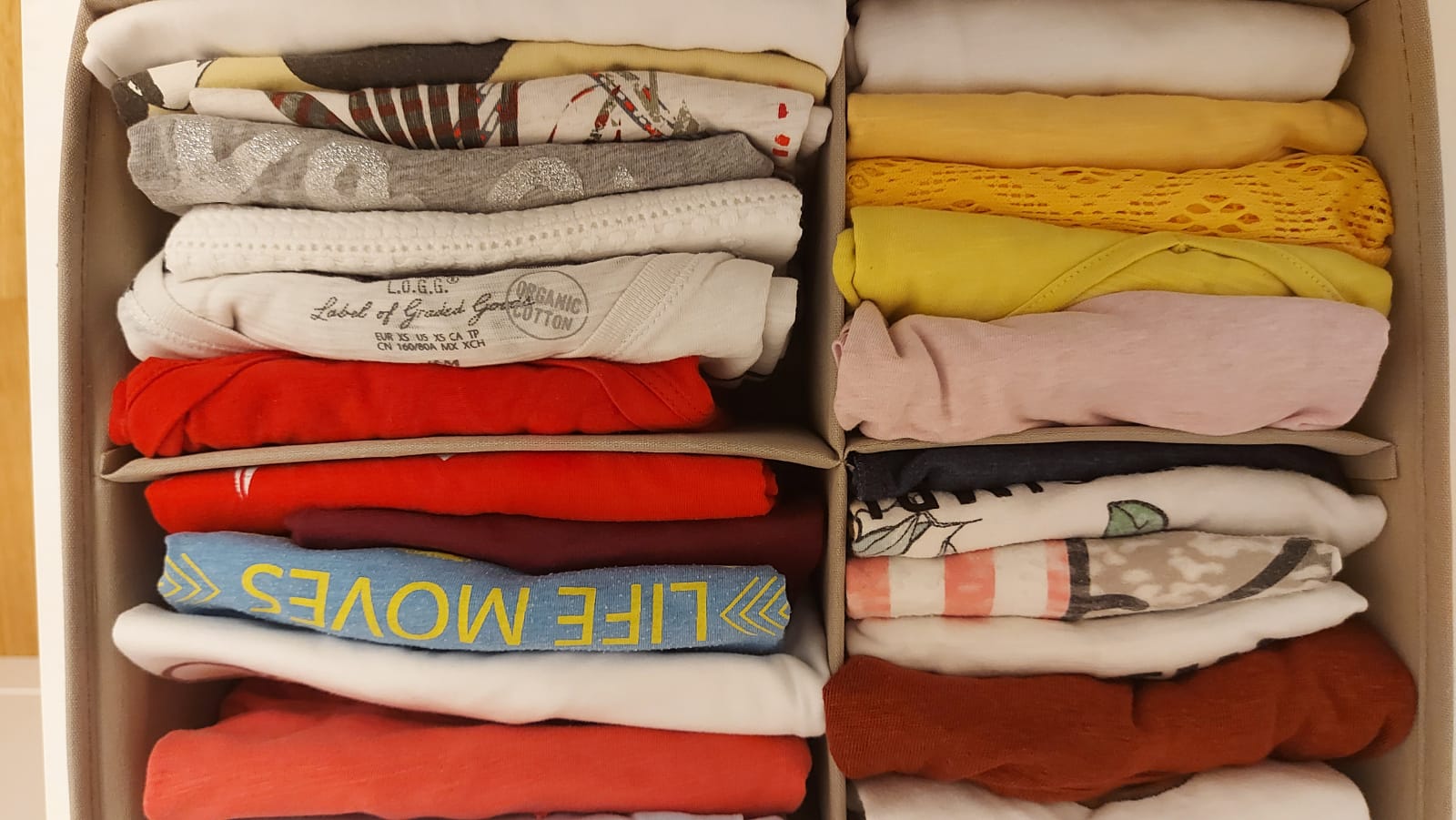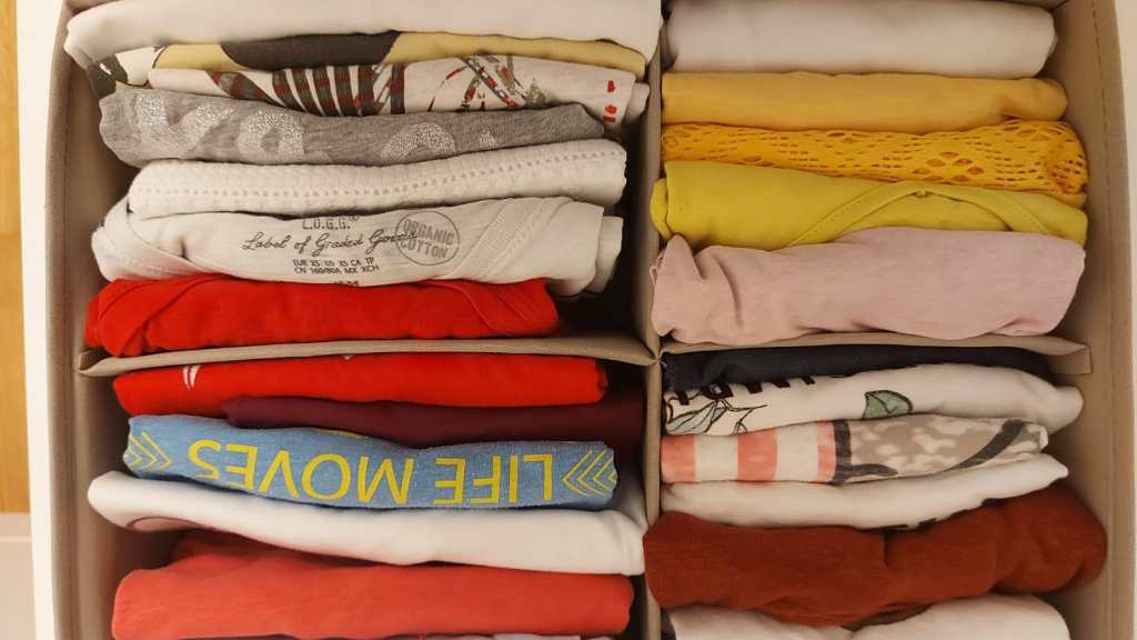 Să luăm de exemplu cele 40 de tricouri. Le vom împărți în 2 categorii mari, lăsând deoparte orice sentimentalisme: tricouri pe care le-am purtat în ultimul an vs tricouri pe care nu le-am purtat. Probabil prima categorie va rămâne cu 25% din total, după cum ziceam.