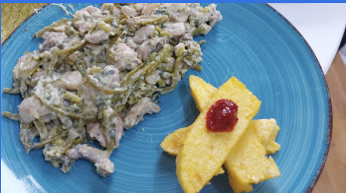 E o rețetă foarte gustoasă, datorită sosului făcut din smântână și parmezan. Eu am încercat și varianta originală, pui + fasole verde + ciuperci, și doar pui cu ciuperci, dar Jamilla amintește că se poate pune și spanac sau mazăre congelată, de exemplu. Sunt convinsă că toate ies bune.