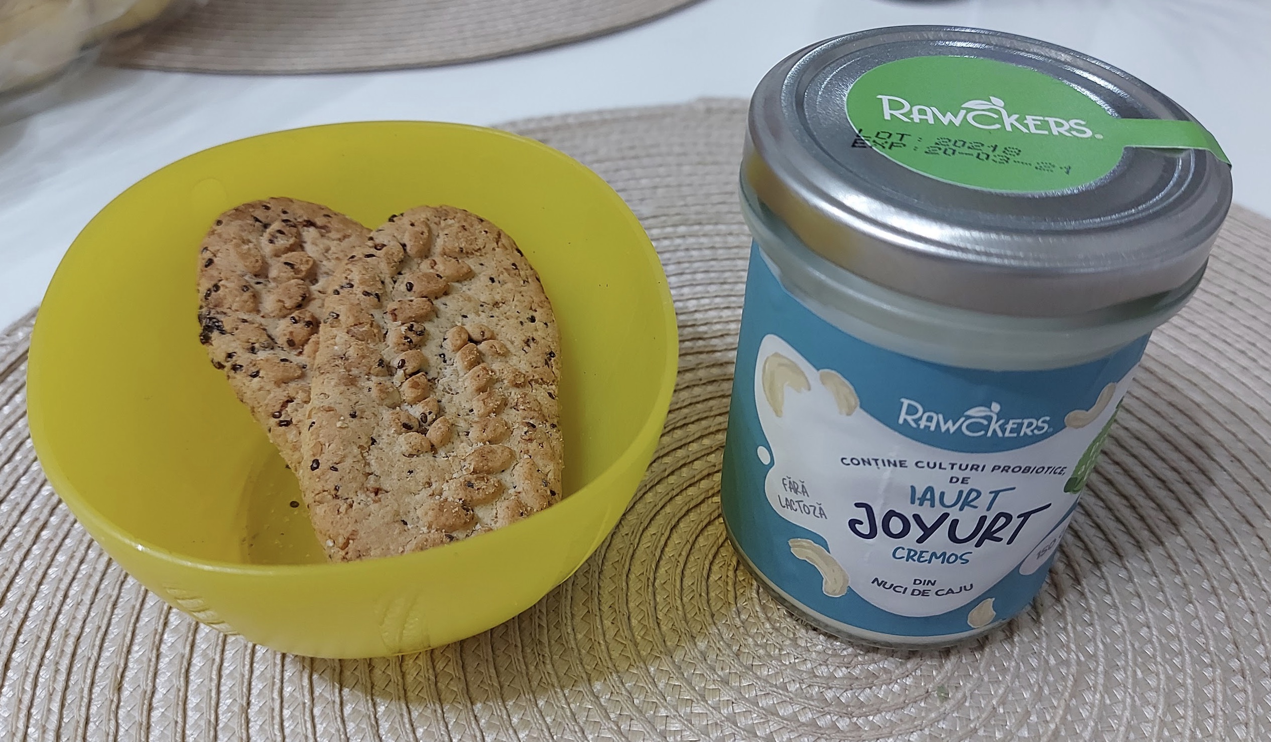 Printre mic dejunurile mai ieșite din comun s-a numărat și acesta, la care am testat un iaurt de caju, foarte cremos și gustos. La gust, n-ai zice că e altceva decât iaurtul clasic. Cred că e o variantă excelentă pentru cei cu intoleranță la lactoză, de exemplu, care vor totuși să savureze un iaurt dis-de-dimineață.