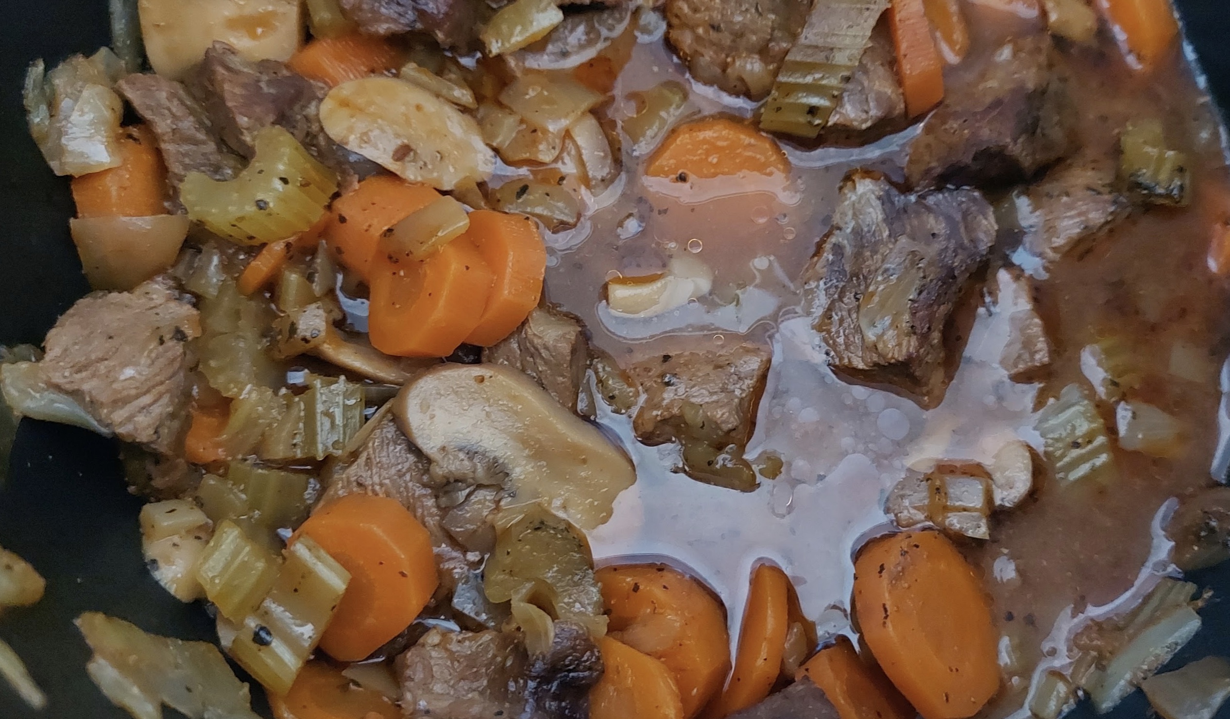 Ca și săptămâna trecută, am avut la prânz tocană de vită (sau gulaș, cum i-ar spune unii) făcută la CrockPot. De data asta, nu pe modul Slow-Cooked, ci gătită sub presiune. Ingredientele au variat și ele un pic, ca să profit de ce aveam prin cămară: vită, morcovi, ceapă, țelină apio și o mână de ciuperci rămase pe un fund de borcan. Tot bună a ieșit.