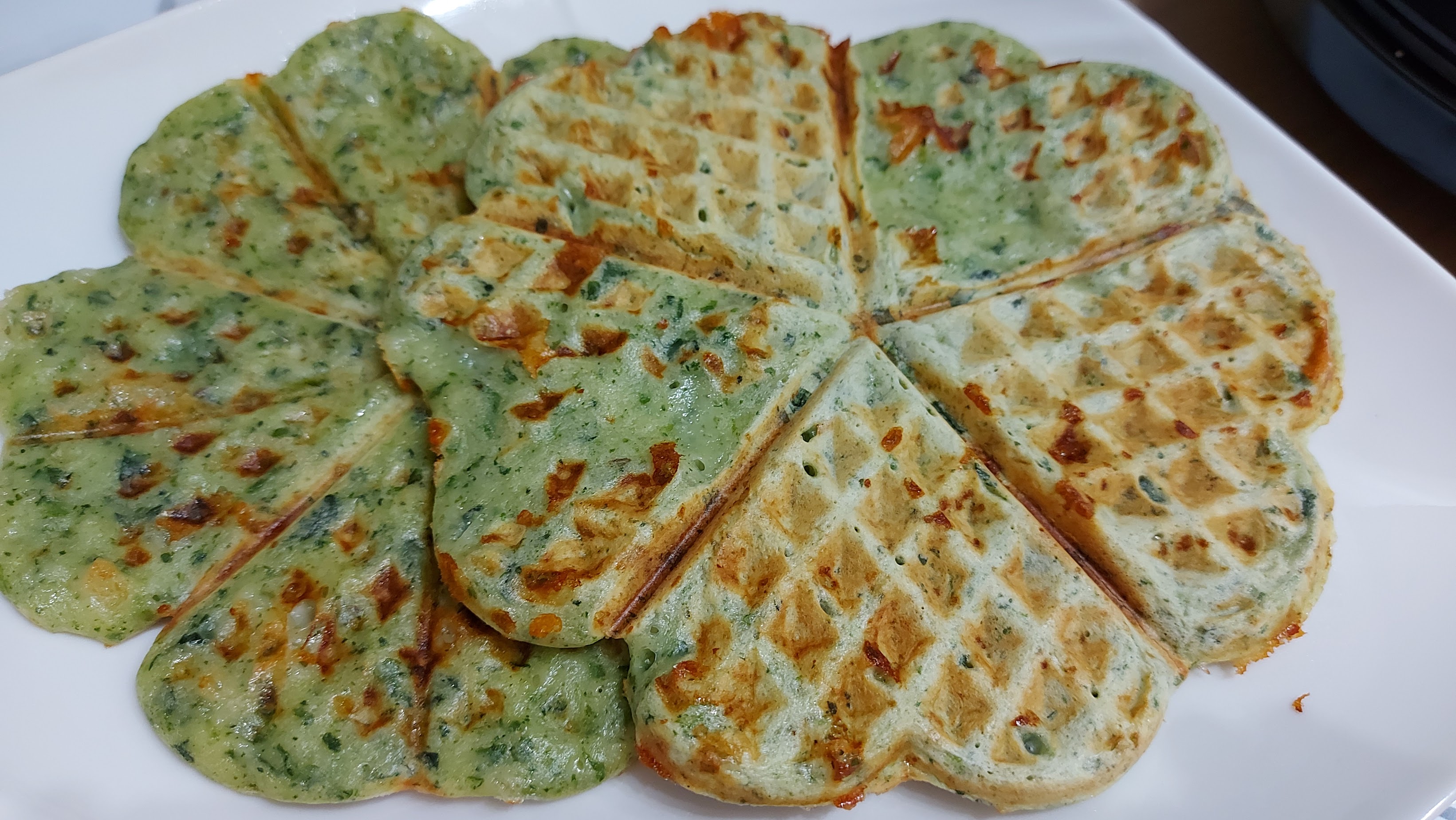 Waffles cu telemea și spanac (de la Prințesa Urbană)