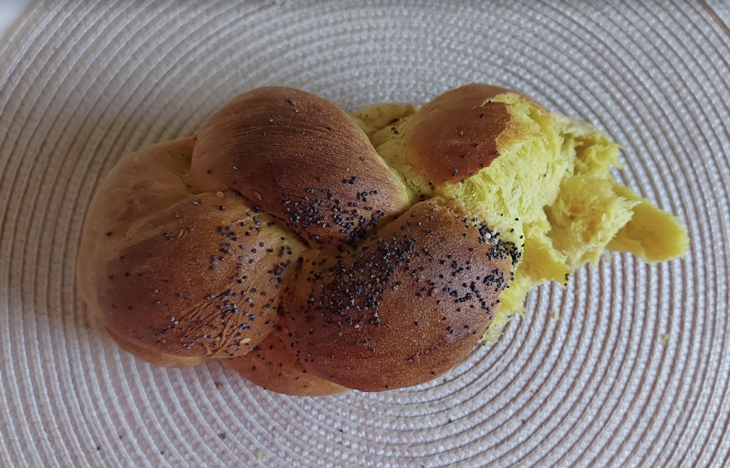 Mai știi momentele alea din copilărie când părinții te trimiteau să cumperi o pâine de la colț și te întorceai doar cu jumătate? 🙂 Cam așa și cu pâinea asta cu turmeric, de la Brutăria Baron: am cumpărat să avem de mic dejun, dimineața, am dat gata jumate din ea, eu și Olivia, de cum am primit-o. Goală am mâncat-o, pe post de desert.