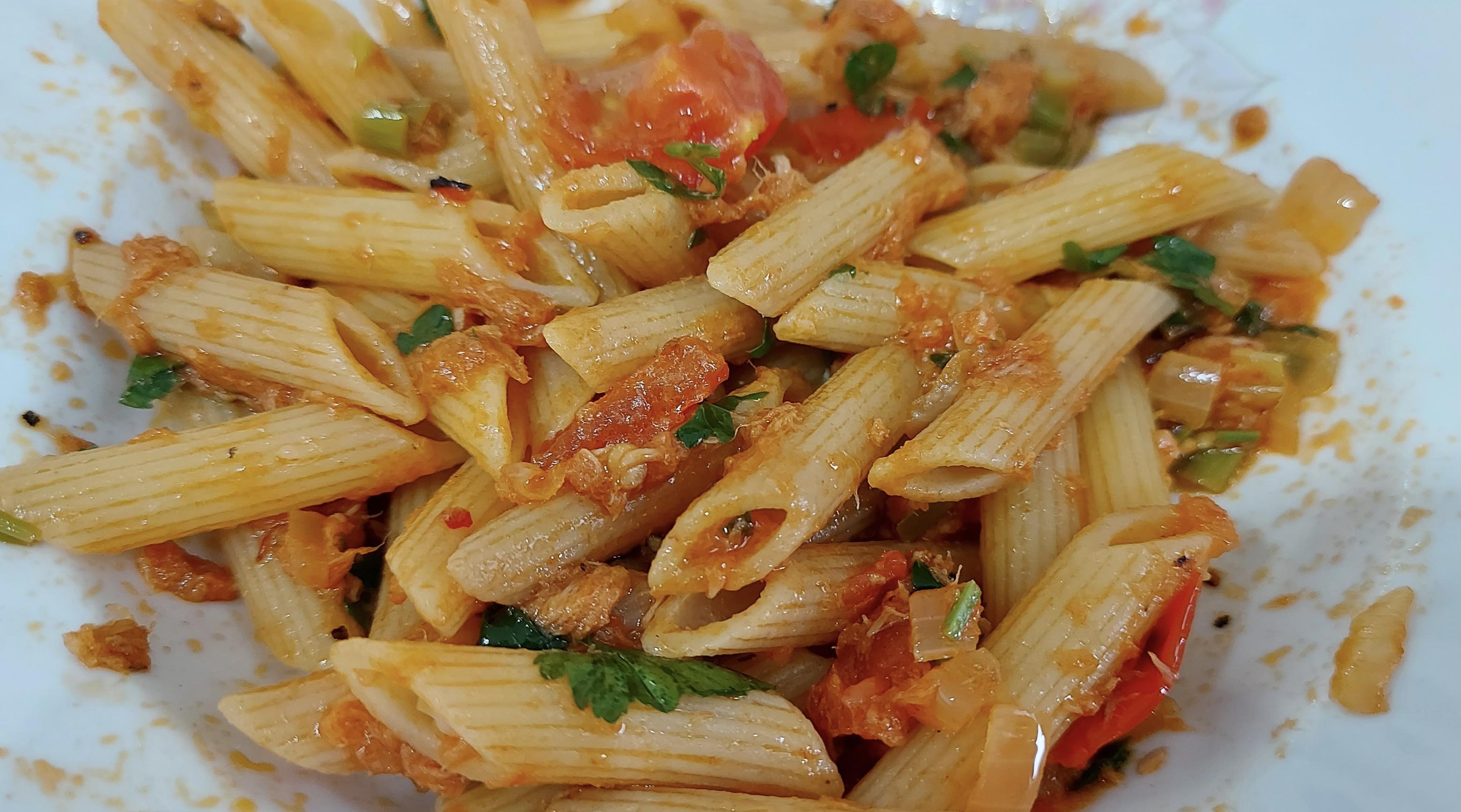 Paste rapide cu ton și praz și roșii