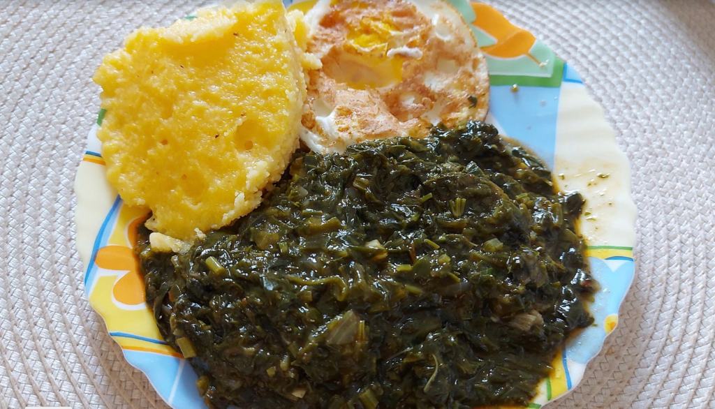 Spanac cu ouă ochiuri și mămăliguță