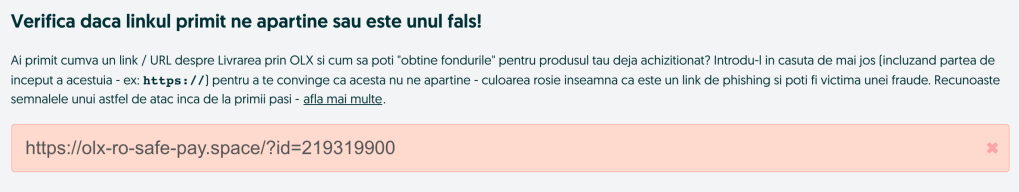 Pentru OLX – poți verifica link-ul primit pe Whatsapp aici.