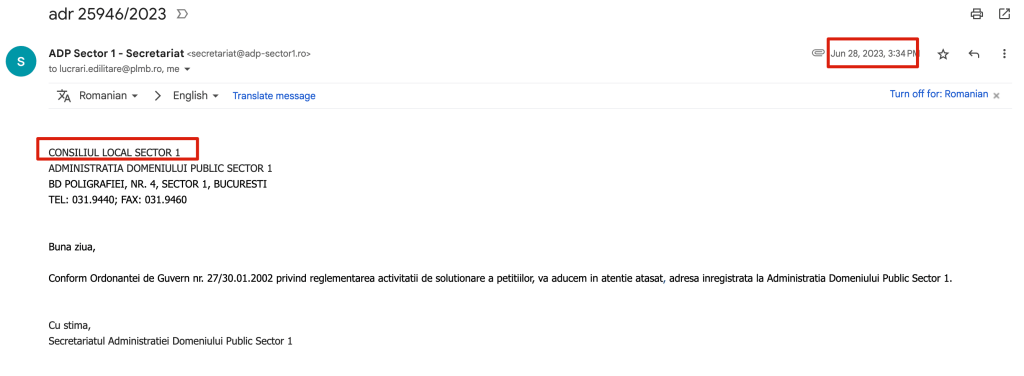 Pe 28 iunie , o mică schimbare birocratica, am fost notificata că ADP a redirecționat sesizarea mea spre Consiliului Local. Atât.