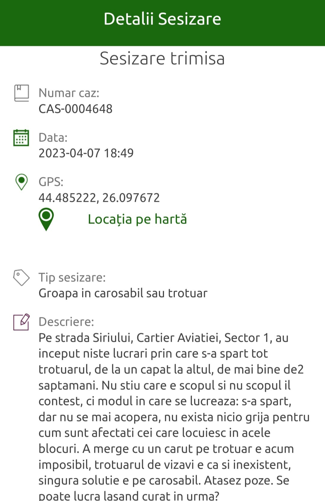 Aprilie 2023 – Prima sesizare, făcută prin aplicația ADP Sector 1