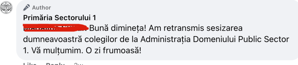 După un nou comentariu insistent pe Facebook, mi se spune că mi-au retransmis sesizarea către ADP.