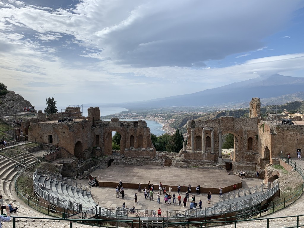 Am admirat marea de sus, profilul Etnei pe fundal, am vizitat teatrul antic (chiar e impresionanta priveliștea de acolo), am mâncat înghețată, am explorat câteva străduțe și magazine. Cred că am petrecut in jur de 3 ore, suficiente as zice, deja de pe la 12 a început să se aglomereze foarte tare.