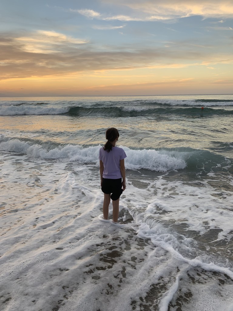Am ajuns în centru din prima seară, deși era relativ rece, unii curajoși făceau baie. Mereu se găsesc astfel de curajoși, oriunde ai fi. Ne-a plăcut mult atmosfera de aici, cu totul alt vibe față de ce am văzut în primele zile. Bonus, am și prins un apus superb.