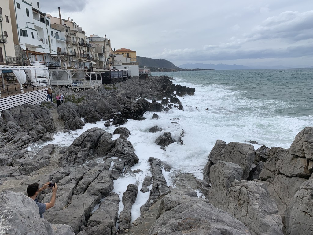 Cazarea din Cefalu a fost una mult mai inspirată, cu privire la mare, deși ca dezavantaj nu puteai pleca de acolo decât cu mașina, pe jos n-ai fi avut cum să ajungi în stațiune, în ciuda distantei mici. (Ai ghicit, lipseau trotuarele, dar deja ne învățasem lecția). În Cefalu însă e o parcare suficient de mare lângă plajă, asta în extra sezon. În sezon sunt convinsă că e bătaie pe locuri.