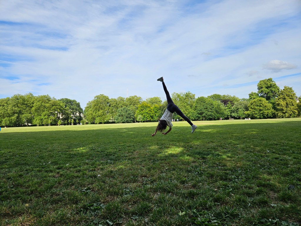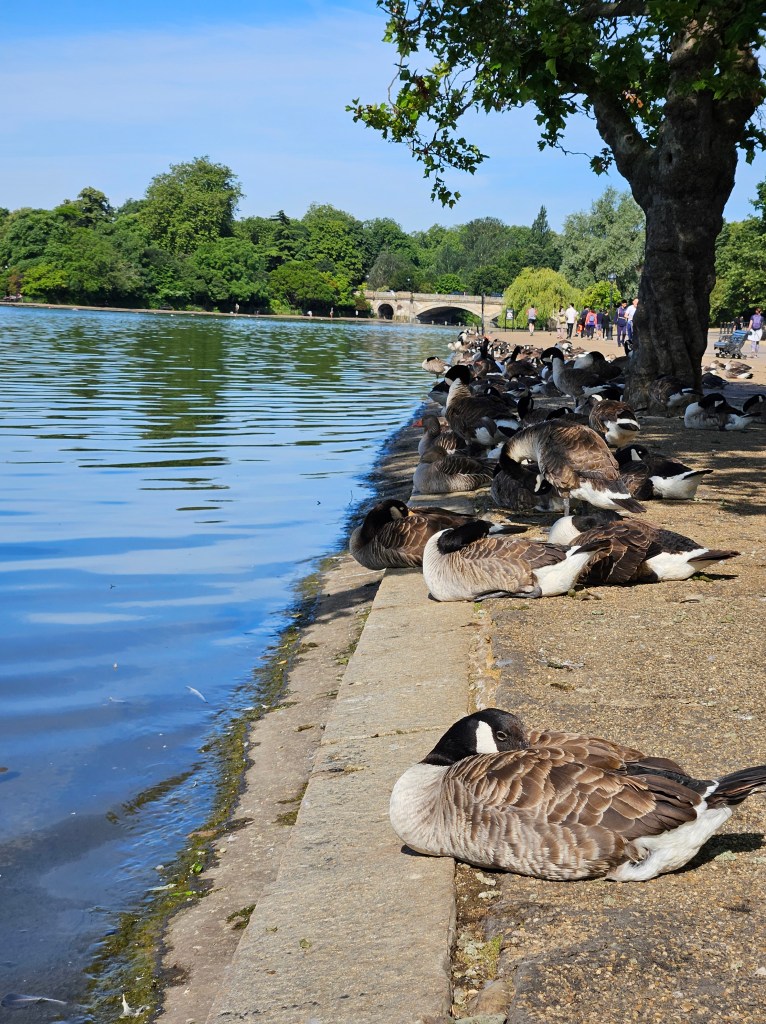 De dimineață am făcut o plimbare prin Hyde Park, un parc imens care ne-a plăcut mult, nu doar datorita frumuseții și curățeniei din el, cât și oamenilor care se întreceau în a face sport. Am văzut de toate: de la alergat (indiferent de vârstă), biciclete și înota, până la ski pe uscat 😀, se pare că englezilor le place mișcarea. O atmosferă de relaxare completa, cu soare blând, fără nicio adiere de vânt, ceva nespecific vremii englezești.