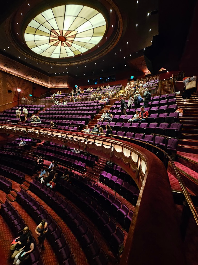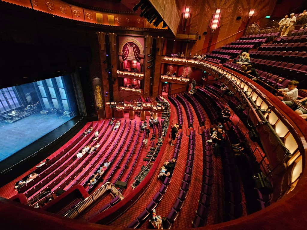 În fine, trecând peste acest eveniment, am mâncat ceva și am intrat în teatru, să ne găsim locurile. Cred că până acum nu am fost de 2 ori în același teatru, la toate musicalurile văzute aici de-a lungul anilor, atât de multe au. Fiecare clădire în care se joacă astfel de spectacole e impresionanta și speciala în felul ei, mai ales dacă o comparăm cu opțiunile de la noi, chiar și cu Teatrul Național care să spunem că ar fi crema cremelor.