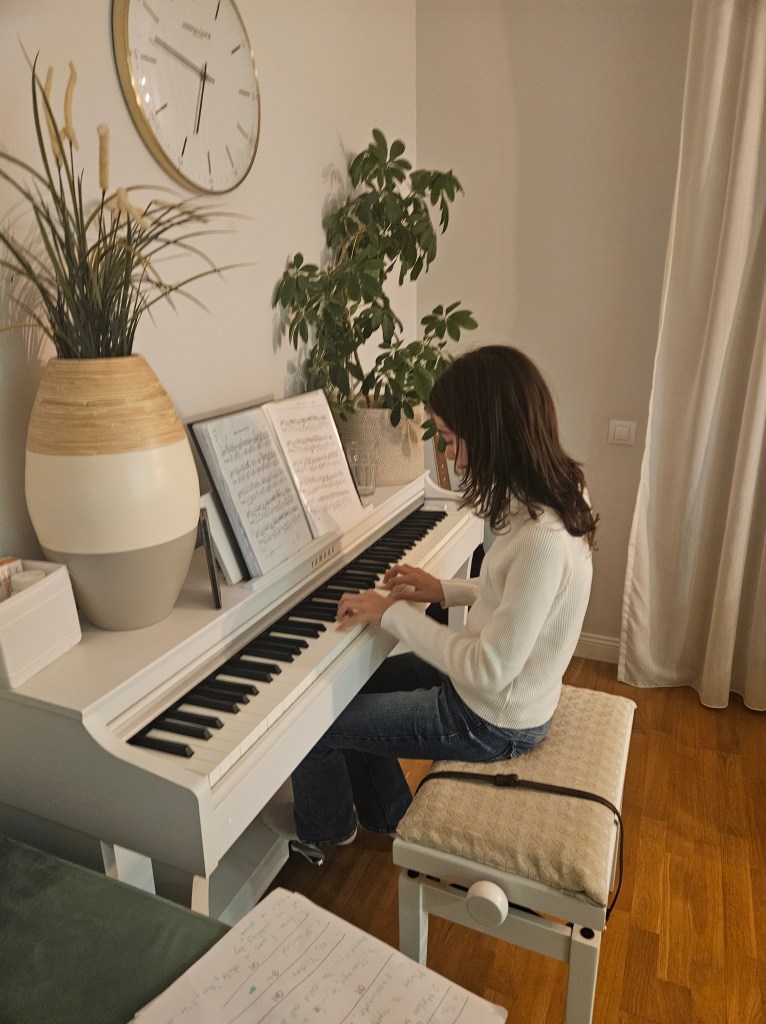 Crește copilul ăsta și se transformă. Încă e cal nărăvaș, incă bate cu copita și fornaie intempestiv la orice mic deranj, daaar, dincolo de asta, dovedește ca reușește să se concentreze și să se remarce atunci când chiar vrea. Ne-a mai demonstrat si cu pianul, cand a mai participat la diverse evenimente. De fiecare dată cea mai bună reprezentație a fost pe scenă, nu la repetiții. Si asta e o mare calitate, sper sa o păstreze toată viața. ❤️
