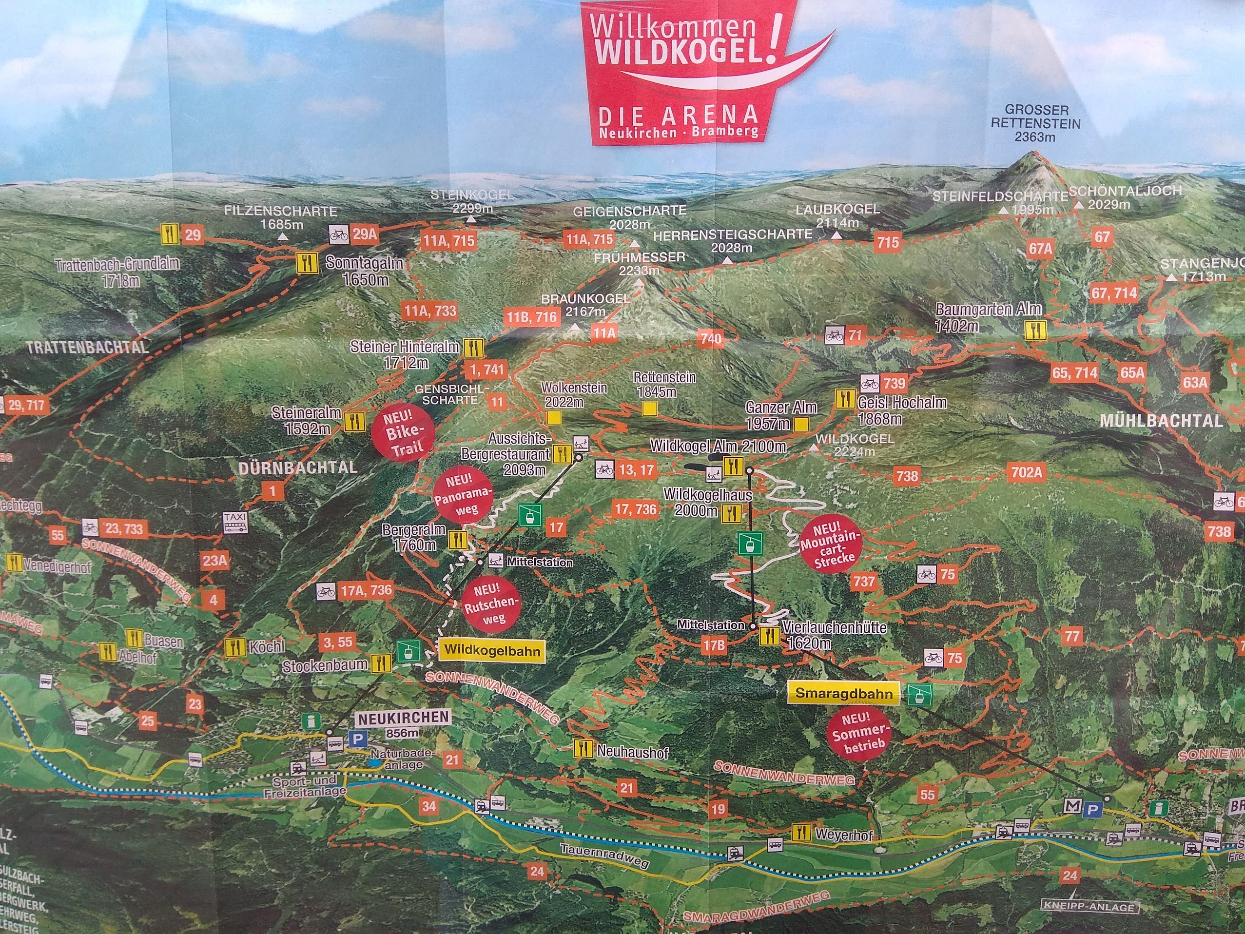 Neukirchen am Großvenediger – Bergbahnen Wildkogel / Bad Gastein – tot pe baza cardului puteam urca și cobori cu telecabina în diverse stațiuni binecunoscute pentru pârtiile de ski. Insa și vara sunt atractive, deoarece la capătul telecabinei nu te asteapta, ca la noi, gogoși și bere, ci mici poteci tematice, locuri de joacă alpine, și peisaje ce îți taie răsuflarea. La Bad Gastein nu am avut însă noroc, căci am urcat pe ploaie, și tot pe ploaie am coborât.