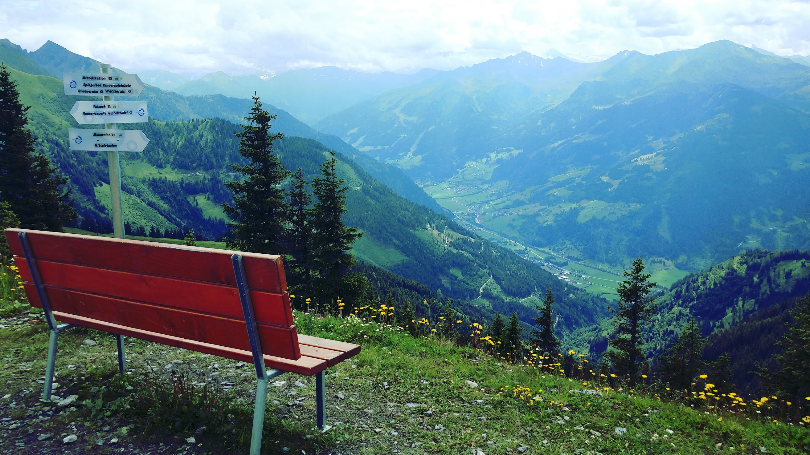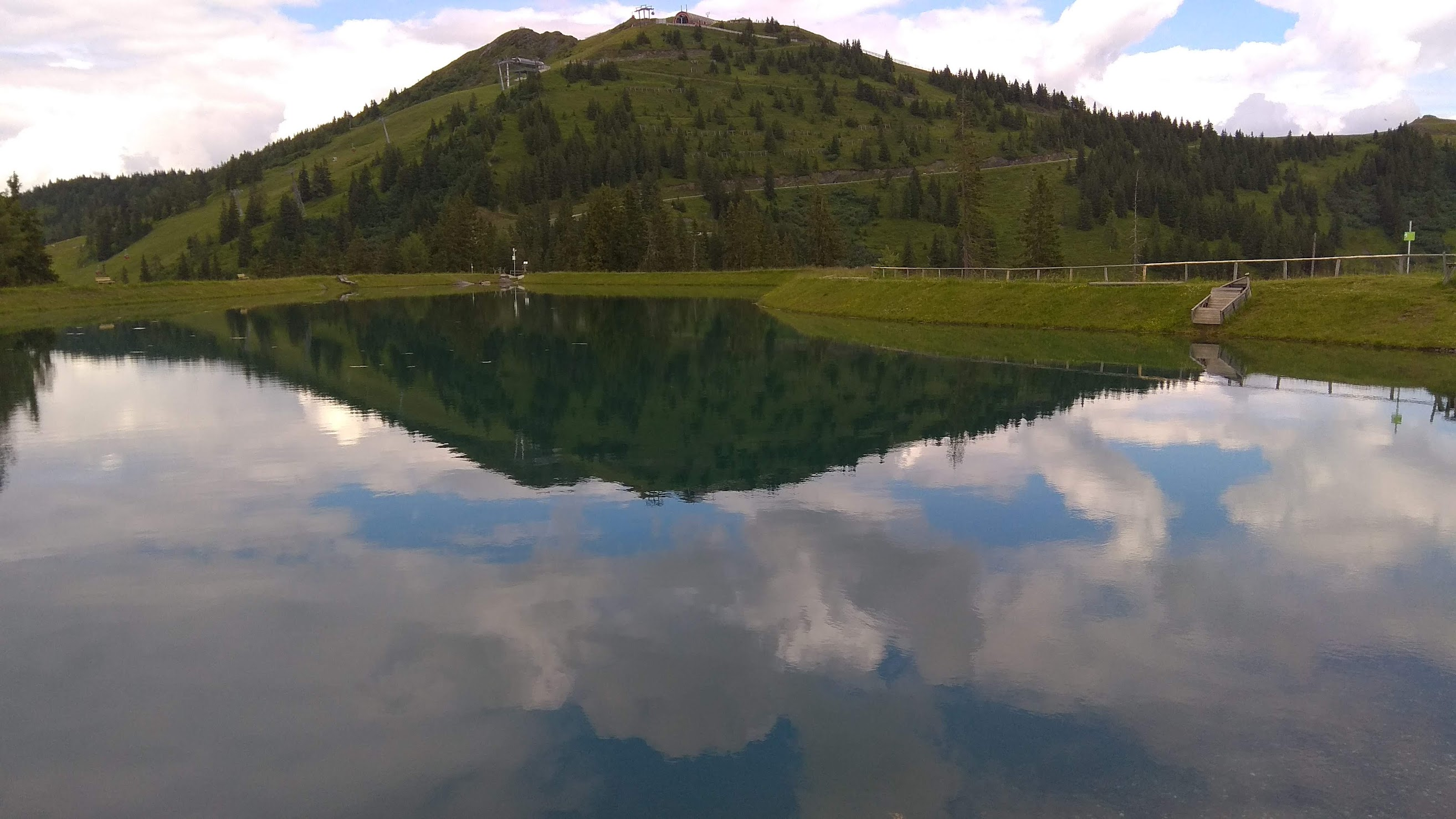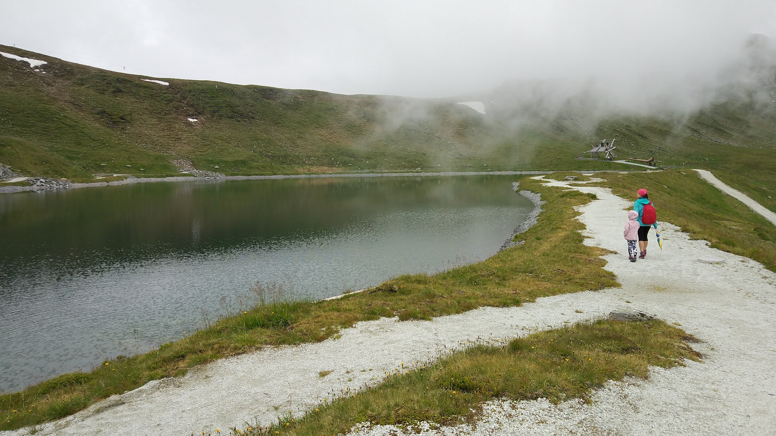 Primele 2 telecabine cu care mai urcasem în alte stațiuni aveau program pana la 6. Adică la 6 era ultima coborare de sus. Lacul Bad Hofgastein am urcat undeva pe la 3, și am ajuns sus intr-un peisaj de poveste. Un lac ca oglinda, poteca senzoriala în jurul lui, loc de joacă, iarba, flori, superb. A fost de departe locul meu preferat din tot ce am văzut în vacanța aceasta.