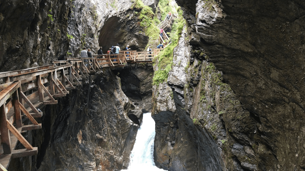 Sigmund Thun Klamm Wasserfall – Austria are multe „klamm”-uri, noi am văzut doua, ambele senzaționale. Sunt un fel de chei /defilee amenajate cu podețe și scări de lemn, astfel încât să poată fi străbătute în siguranță, chiar și de copii. Natura e absolut spectaculoasă aici.