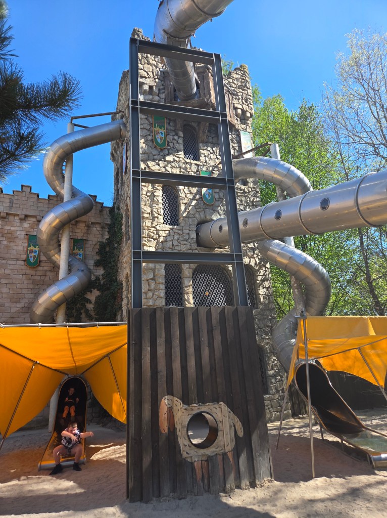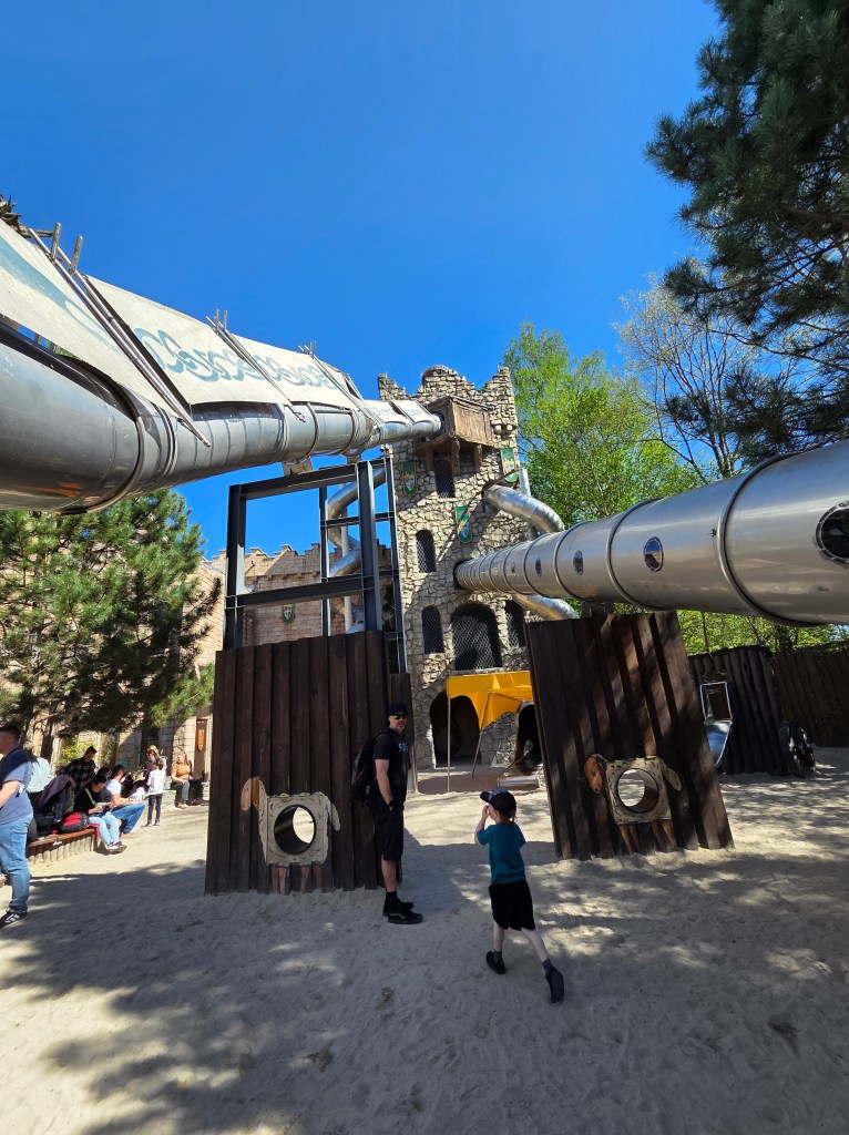 ℹ️ Info: o pelerină subțire de ploaie, în rucsac, ar fi fost bine-venită. Unii veniseră pregătiți. Sunt mai multe atracții în parc de unde poți ieși ud, noi am încercat să le evităm pe cele mai riscante.