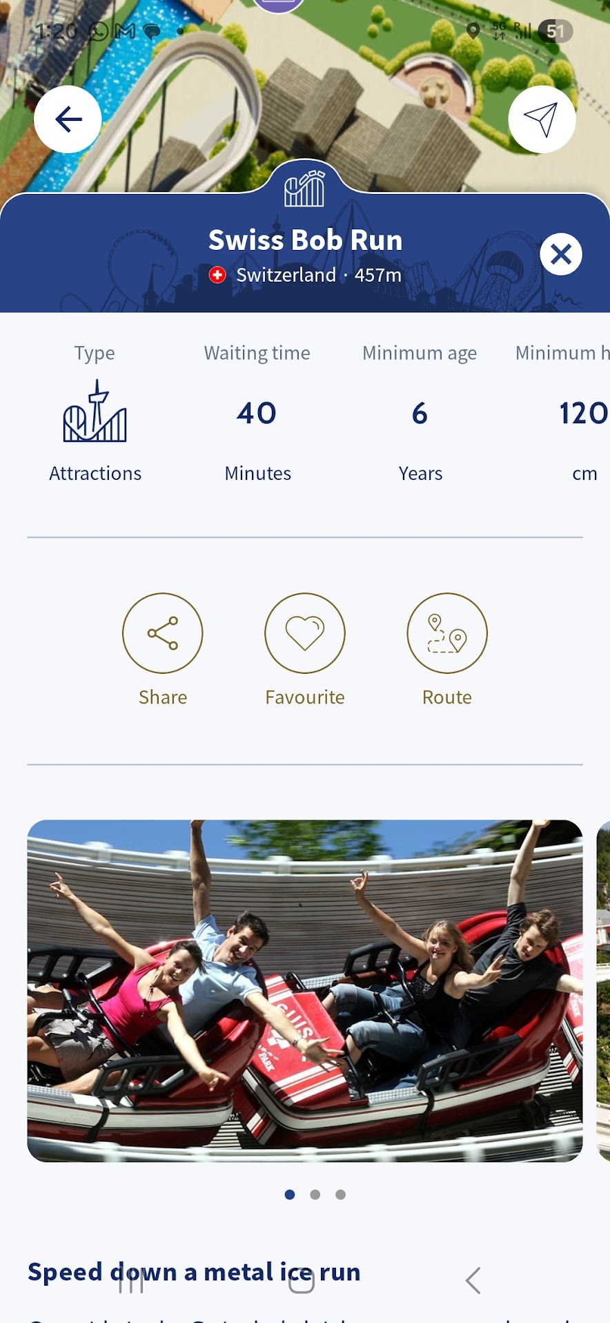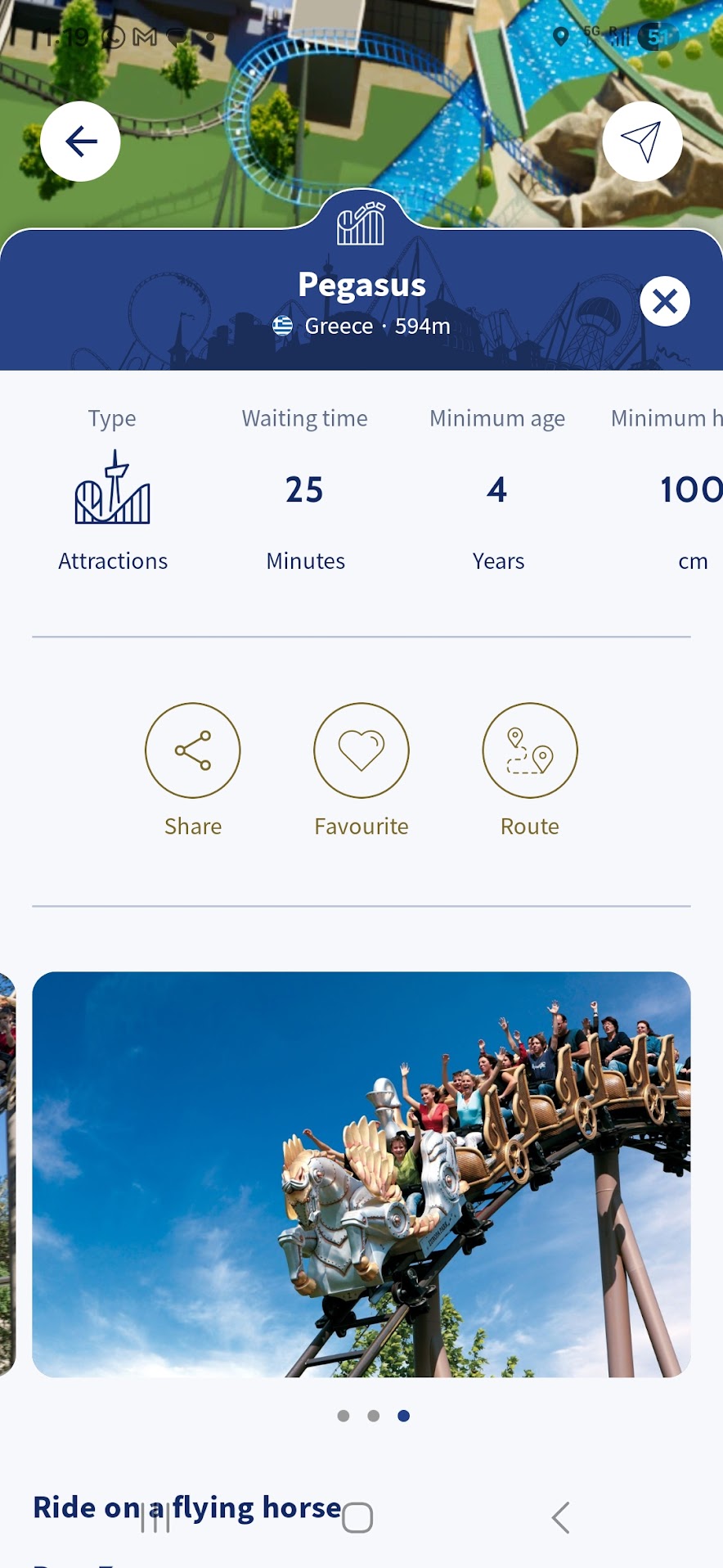 Cam așa arată, în aplicație, detaliile fiecărei atracții în parte, urmate de un text detaliat despre ce presupune sau cum se simte.