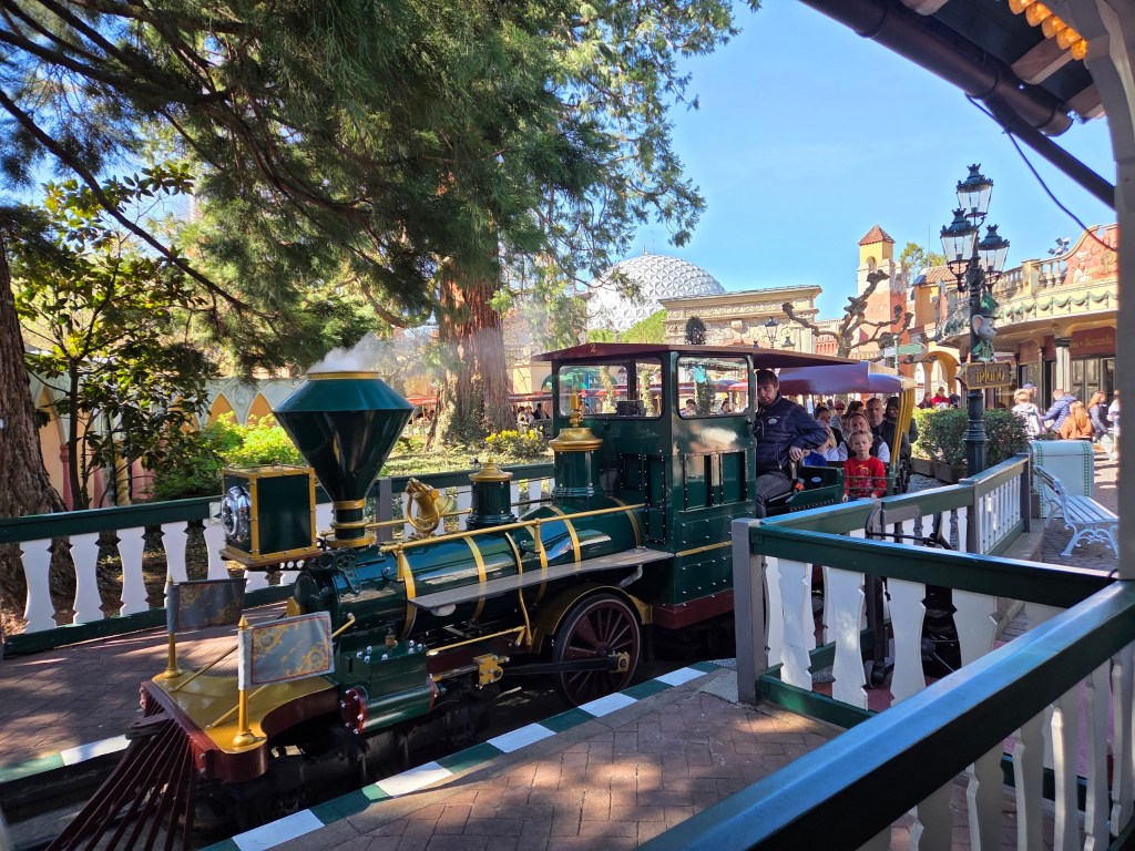 După atâta stat la coadă, am decis să luăm trenulețul panoramic din zonă, care urma să ne poarte prin tot parcul, pentru a ne odihni și a ne face o idee a ce vrem să vedem mai departe. A fost o alegere suficient de bună, deși cred că o puteam sări; traseul e circular și te aduce de unde ai plecat, trenul are 4 stații în total și a stat cam mult în fiecare dintre ele. Iar aveam senzația că pierdem timp prețios.